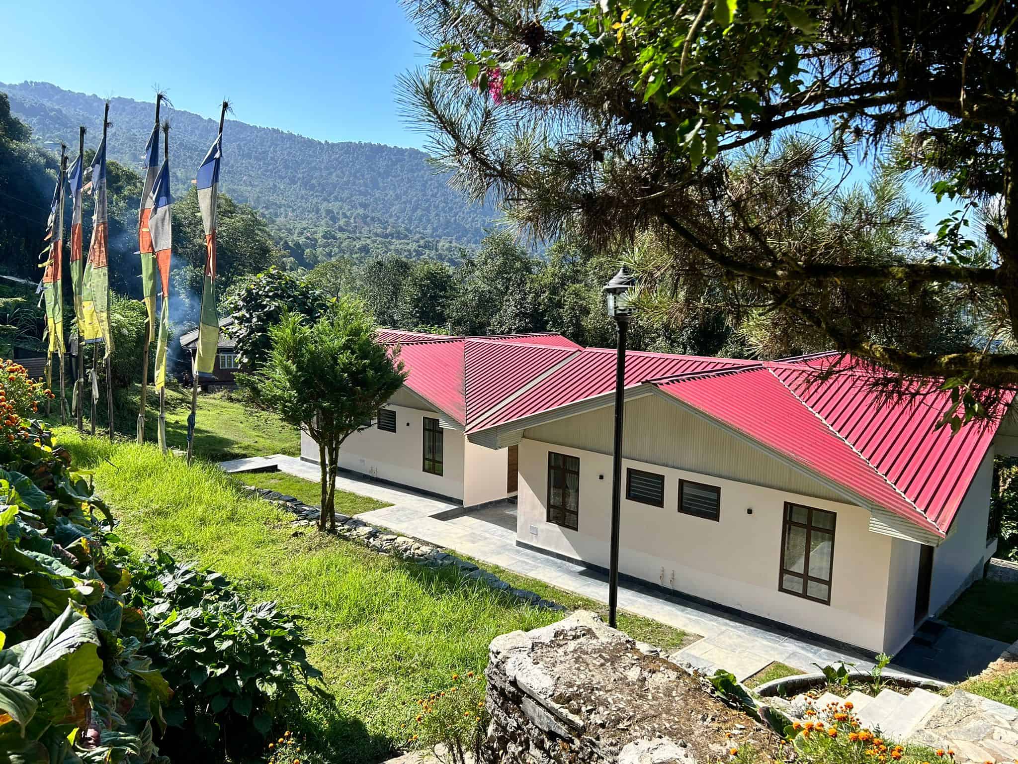 Bienvenue dans le centre de retraite de yoga et méditation que nous avons fondé au beau milieu de la nature luxuriante du Sikkim, en Inde Himalaya : un lieu propice à la détente, la méditation et la pratique du yoga. Nous y organisons plusieurs retraites par an, entre octobre et mars, avec des petits groupes francophones au départ de la Belgique.